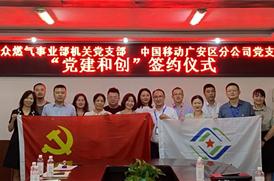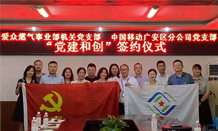 為充分發(fā)揮黨建引領(lǐng)作用,以共建促黨建,實(shí)現(xiàn)黨組織優(yōu)勢(shì)互補(bǔ),增強(qiáng)基層黨組織凝聚力、創(chuàng)造力和戰(zhàn)斗力,9月2日下午,廣安愛眾燃?xì)馐聵I(yè)部機(jī)關(guān)黨支部與中國(guó)移動(dòng)廣安區(qū)分公司黨支部舉行“黨建和創(chuàng)”聯(lián)合共建簽約儀式。